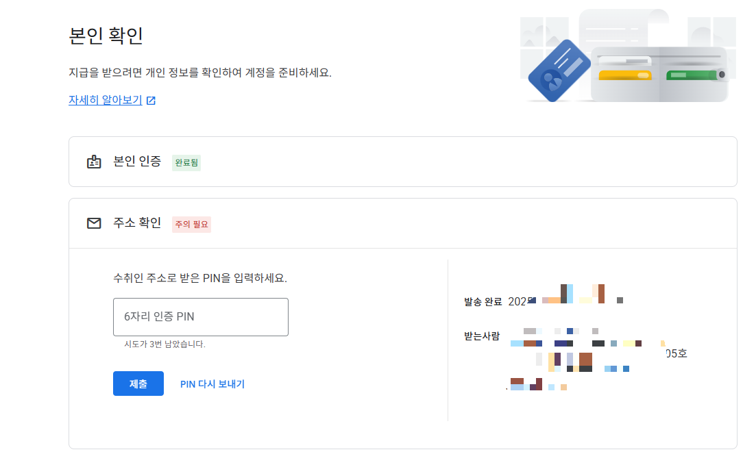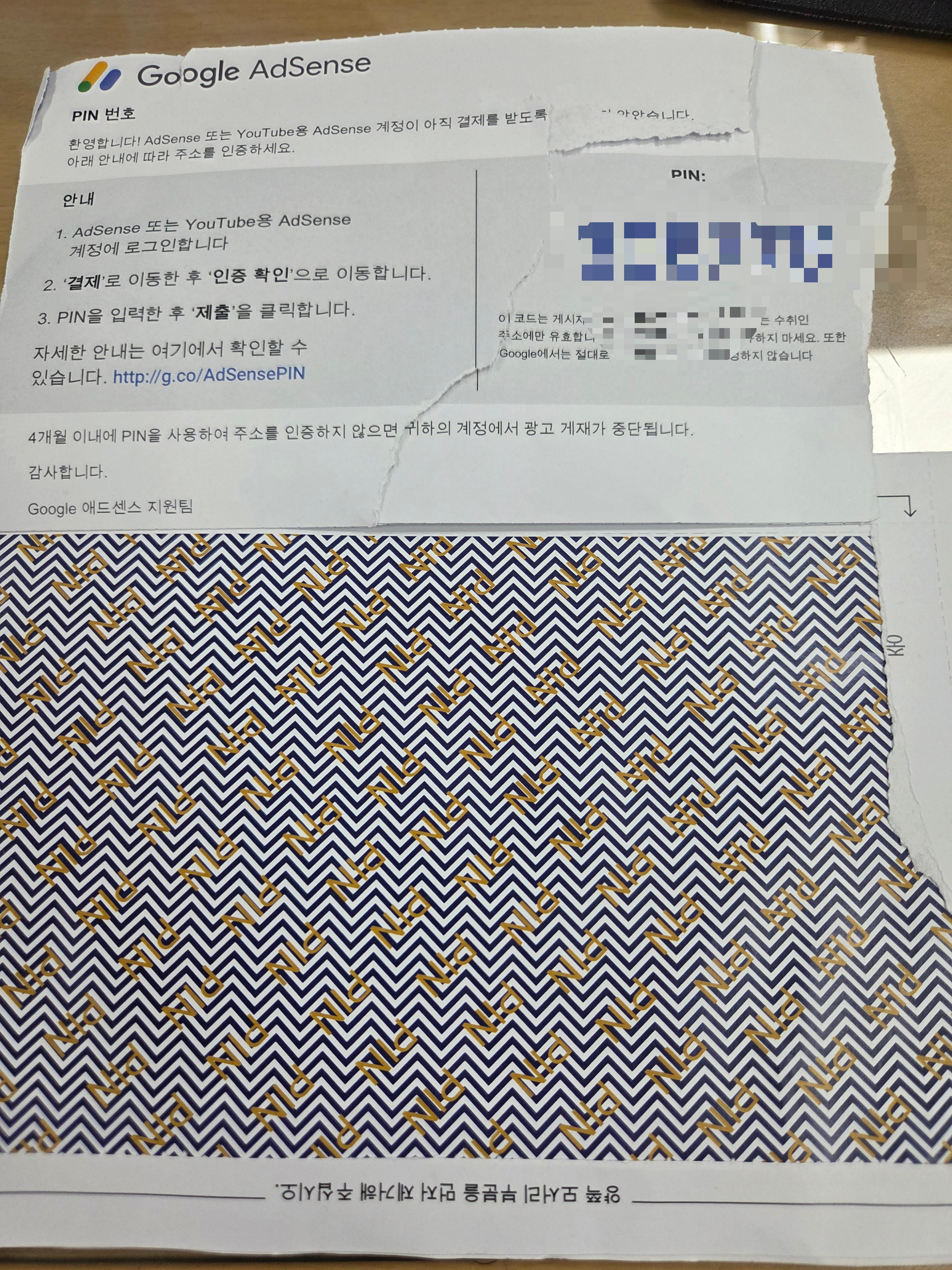 구글 애드센스 핀번호는 6자리 입니다. 도착한 우편을 뜯어보면 핀번호가 있습니다.