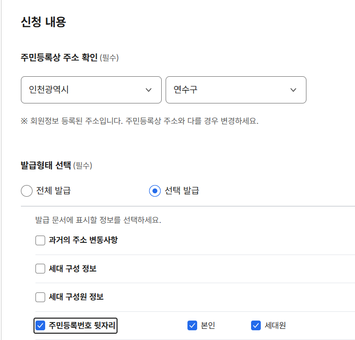 - 주민등록등본 등 가족관계 증명 서류 업로드