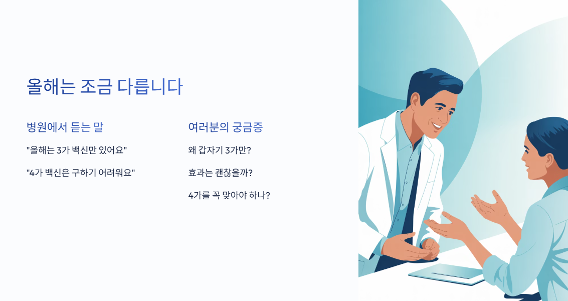 그래서 오늘은 2025년 기준으로 독감 백신 3가와 4가의 차이점, 그리고 왜 정부가 3가 백신만을 권고하게 되었는지 그 이유를 정리해드리겠습니다.