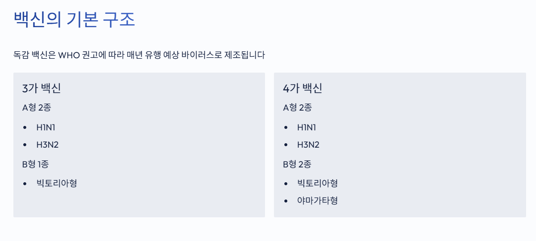 여기서 3가 백신은 A형 바이러스 2종(H1N1, H3N2)과 B형 바이러스 1종(빅토리아)을 포함하고요,