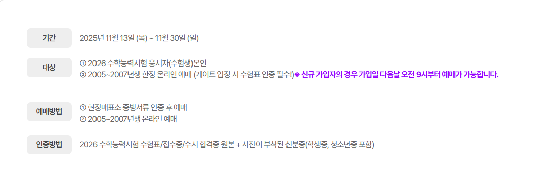 💡 수능 끝나고 바로 방문 계획이 있다면 미리 회원가입하고 예매 진행해두는 것이 좋아요!