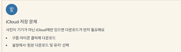 - 사진이 iCloud에만 저장되어 있는 경우 (기기 저장 X)