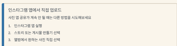 - 촬영 후 인스타그램 앱 안에서 직접 업로드하는 것도 하나의 방법이에요. 사진 앱에서 바로 공유가 안 될 땐, 인스타 앱 → 스토리 만들기 → 앨범에서 사진 선택해 보세요.