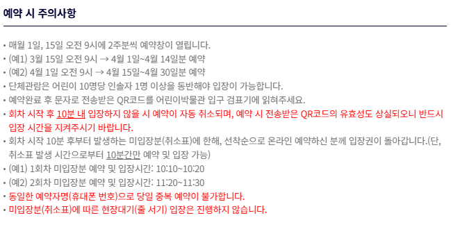 그리고 예약한 관람 시간이 임박해도 주차를 못했을 경우에는