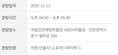 총 6타임으로 나눠져 있는데 1부~4부는 어린이집, 유치원 단체어린이관람객이 많고,