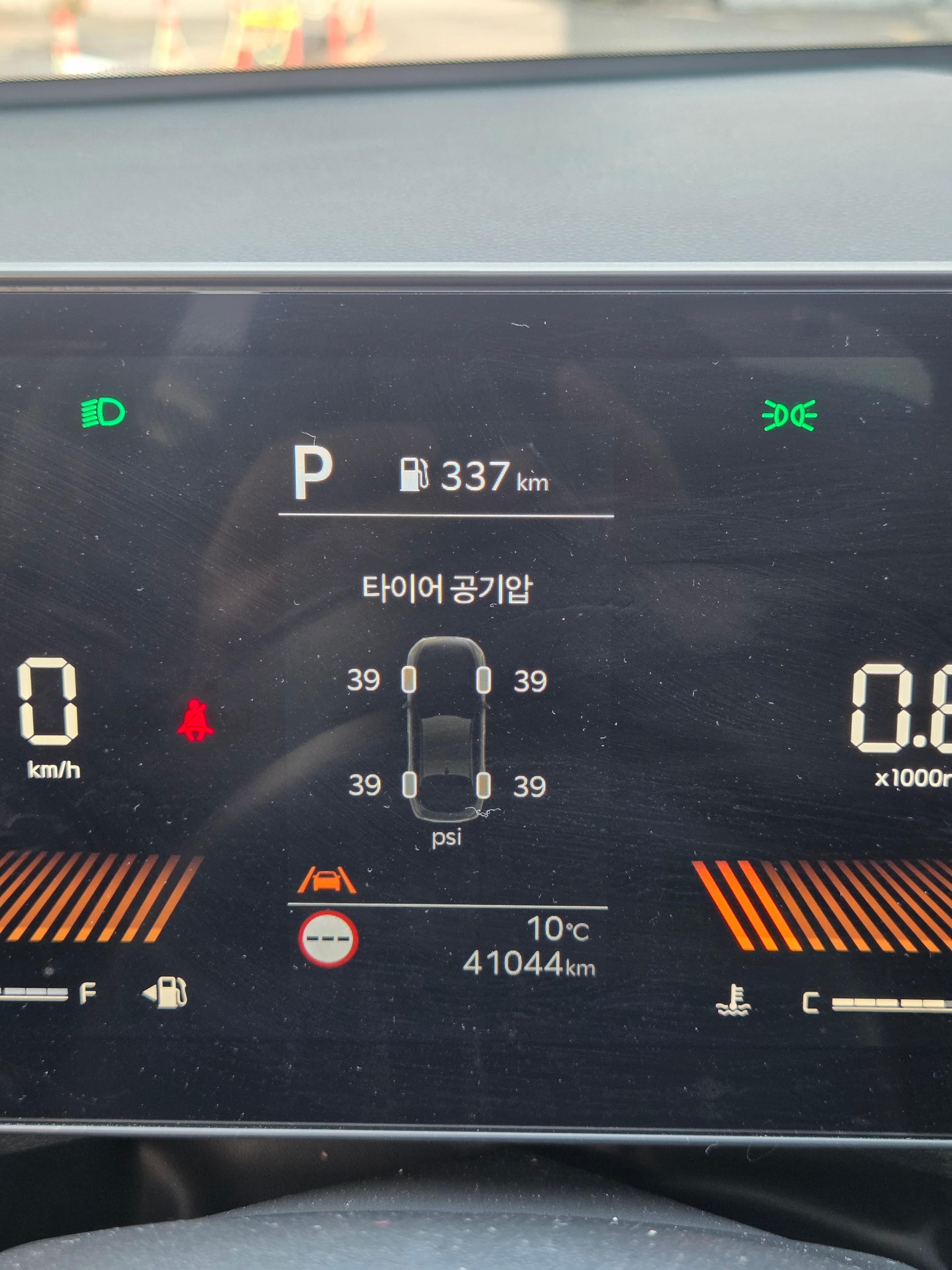 타이어 공기압 정상수치는 38~40이라고 합니다.