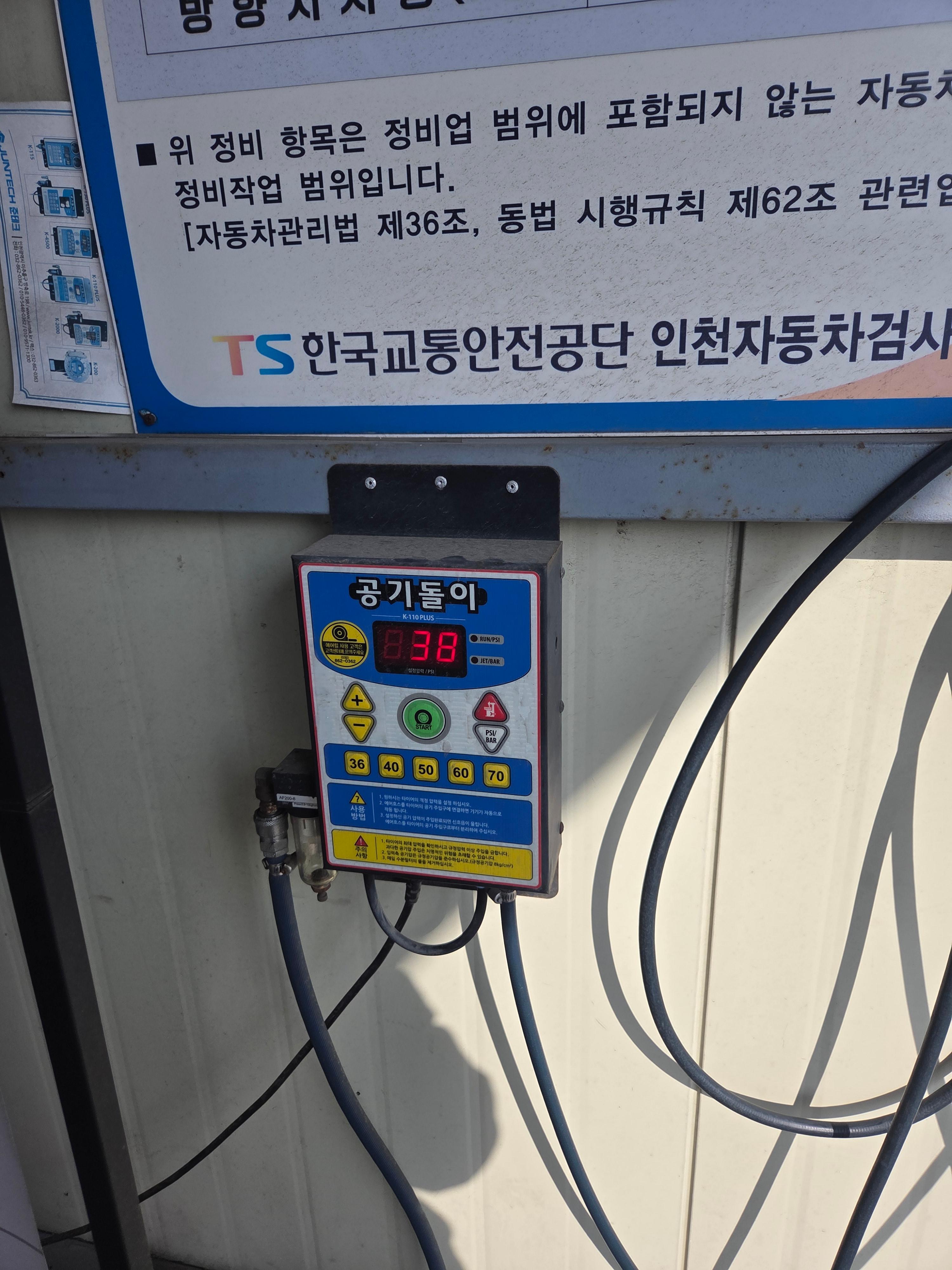 그곳에서 여쭤보니 한켠에 이렇게 공기압을 채울 수 있는 기계가 있고