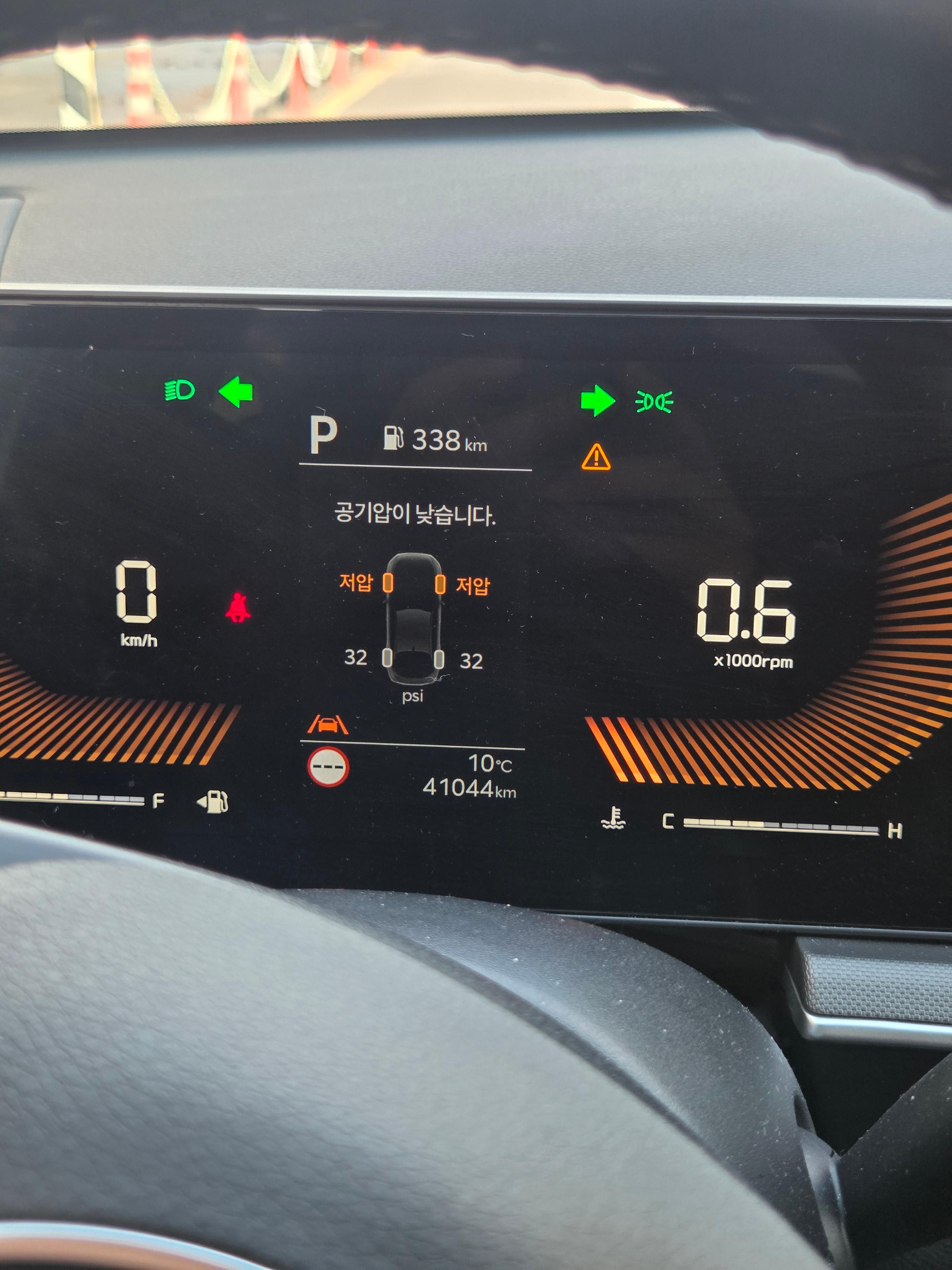 회사 차량에서도 어김없이 공기압이 낮다는 경고등이 들어왔습니다.