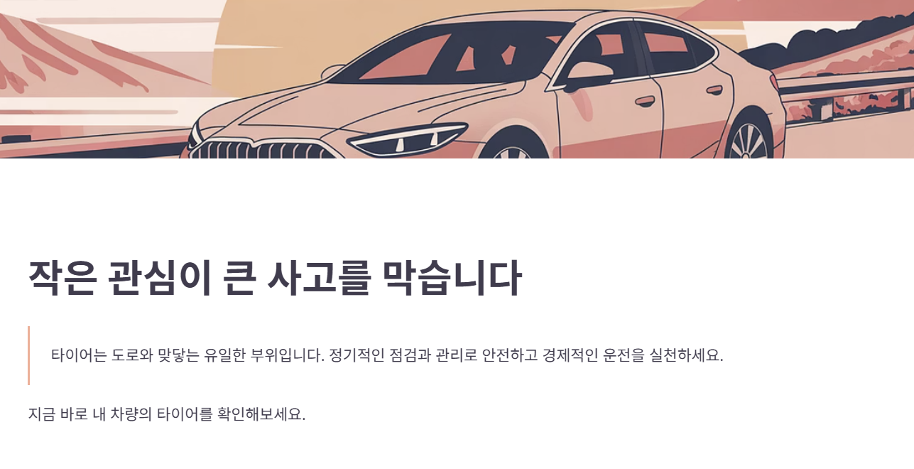 지금 이 글을 읽은 후, 바로 내 차량의 타이어를 확인해보세요. 작은 관심이 큰 사고를 막아줄 수 있습니다.