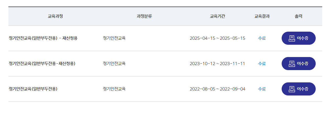 교육을 마쳤다면 이수증 발급은 꼭 해두셔야 합니다.