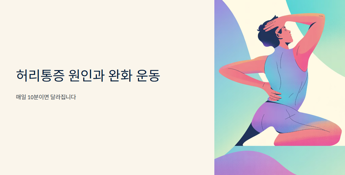 단순한 스트레칭과 운동만으로도 허리통증 완화에 큰 도움이 됩니다. 매일 10분, 꾸준한 실천이 중요합니다.