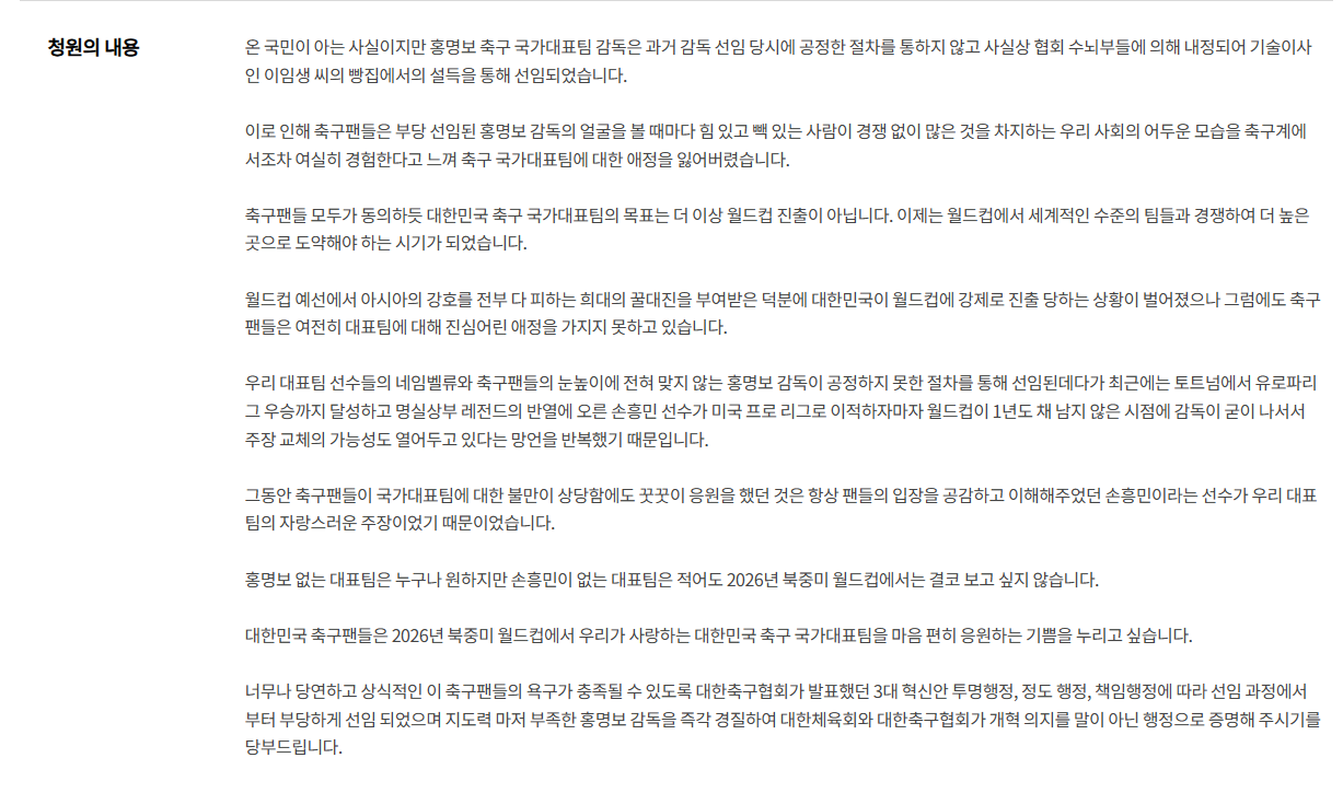 2025.10.13-홍명보 감독 경질 국민청원 쟁점 정리