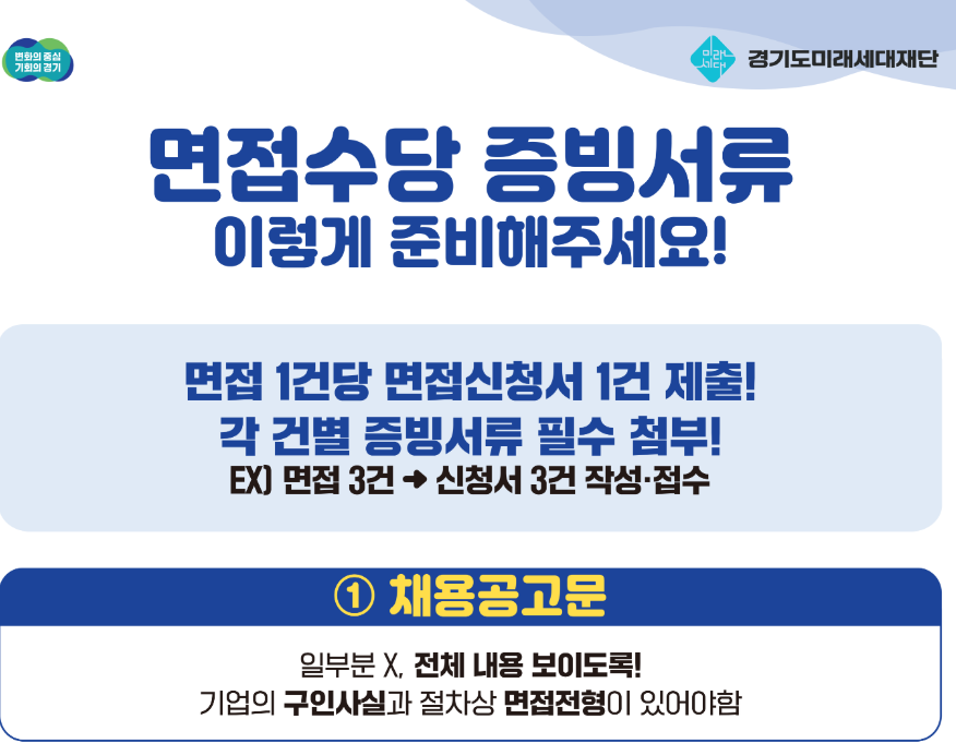 해당 기간에 면접을 참여한 분들께서는 면접 다녀온 후에 증빙서류를 구비하여