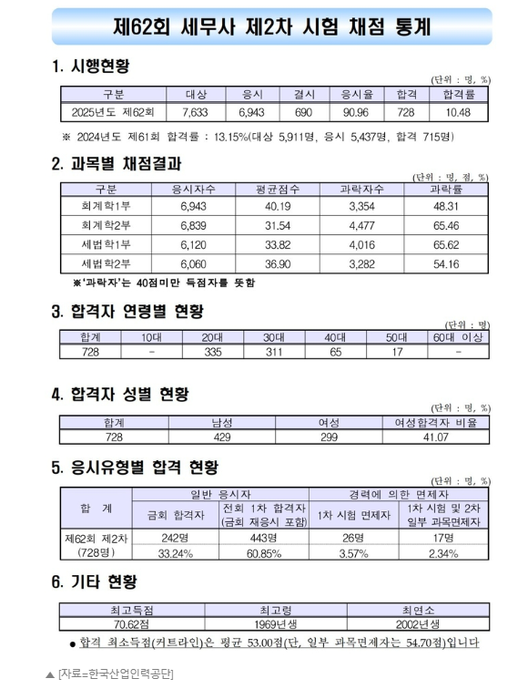 2025년 10월에 시행된 제62회 세무사 제2차 시험의 결과가 발표되었습니다.