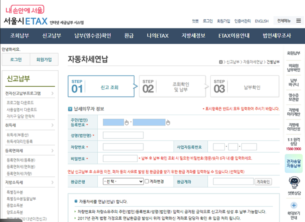 - [신청] → 자동차세 연납 신청