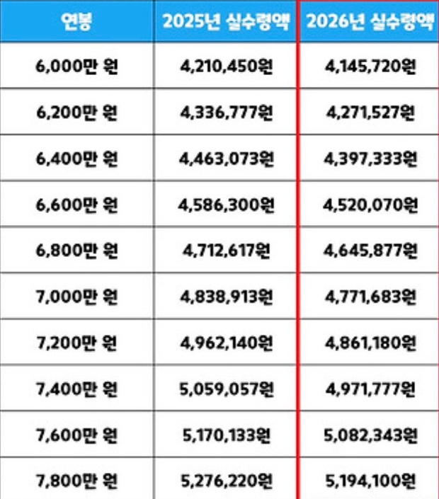 - 월 실수령액 감소폭 : 약 6만~8만 원