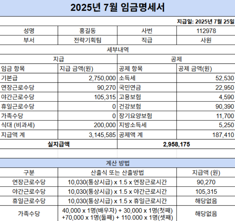 👉 연봉이 같아도 공제액이 늘어나면 실수령액은 줄어들 수밖에 없습니다.
