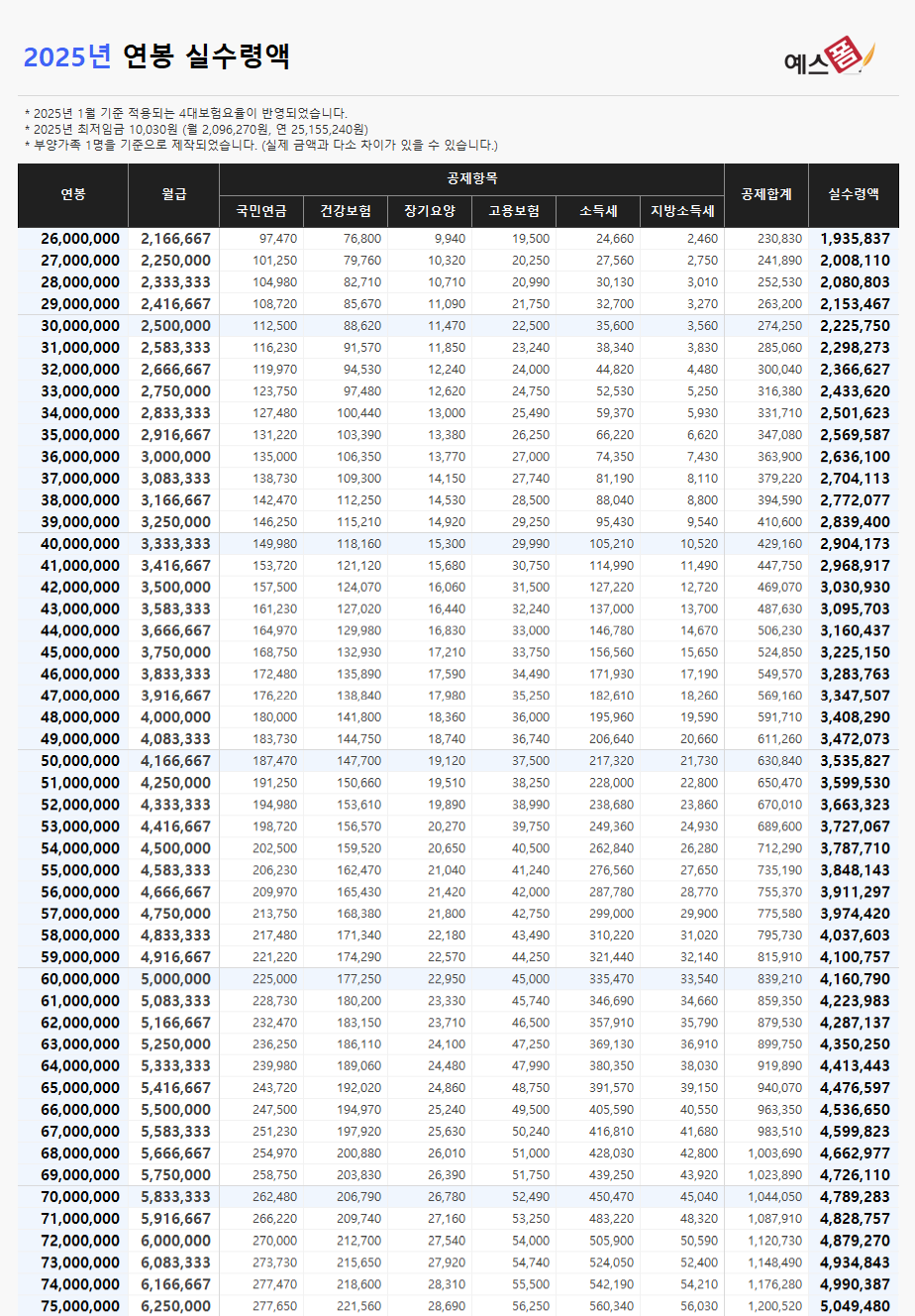 2025년 연봉 실수령액 자료를 먼저 확인하겠습니다.