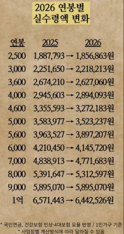 2026년 1월을 기점으로 국민연금과 건강보험 요율이 인상되면서