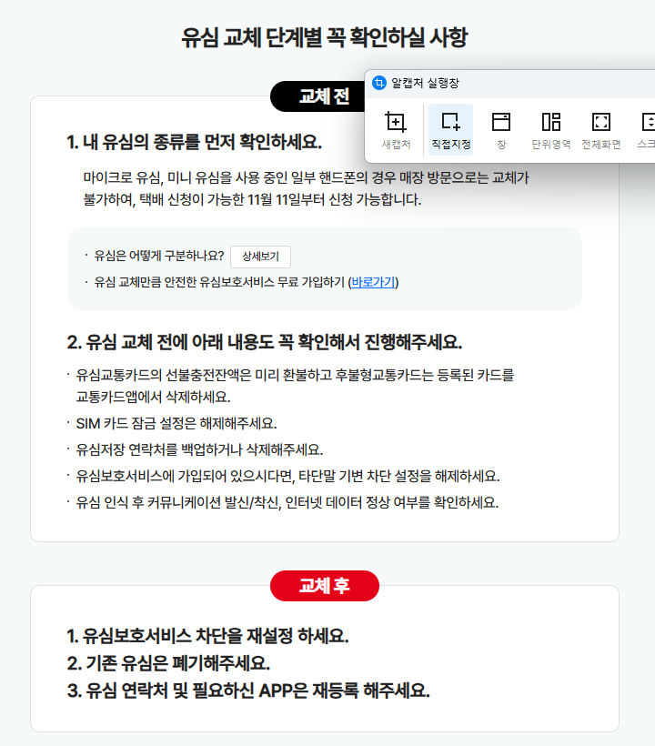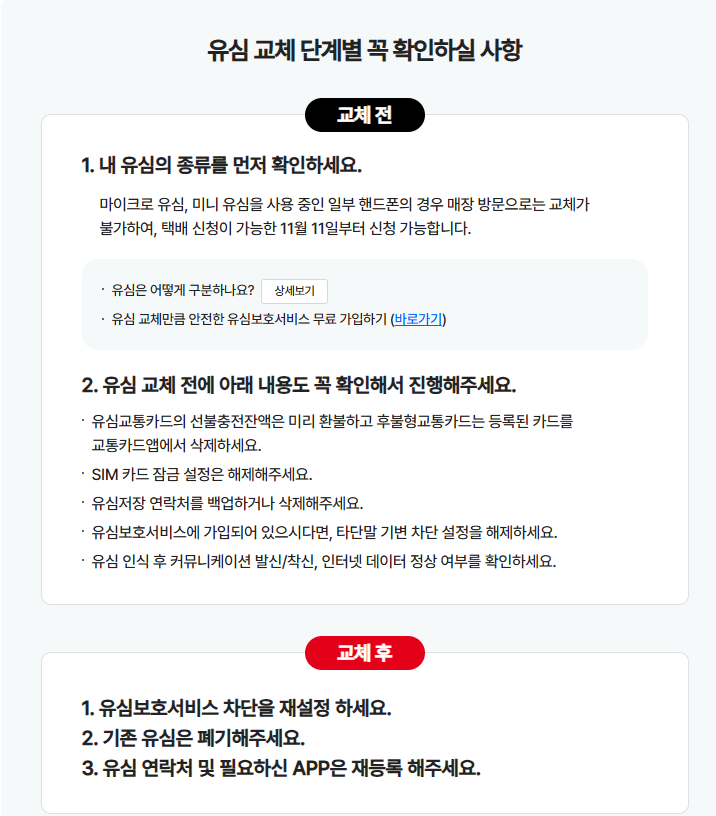※ 택배 교체 시 기존 유심은 스스로 폐기(파손)하면 됩니다.